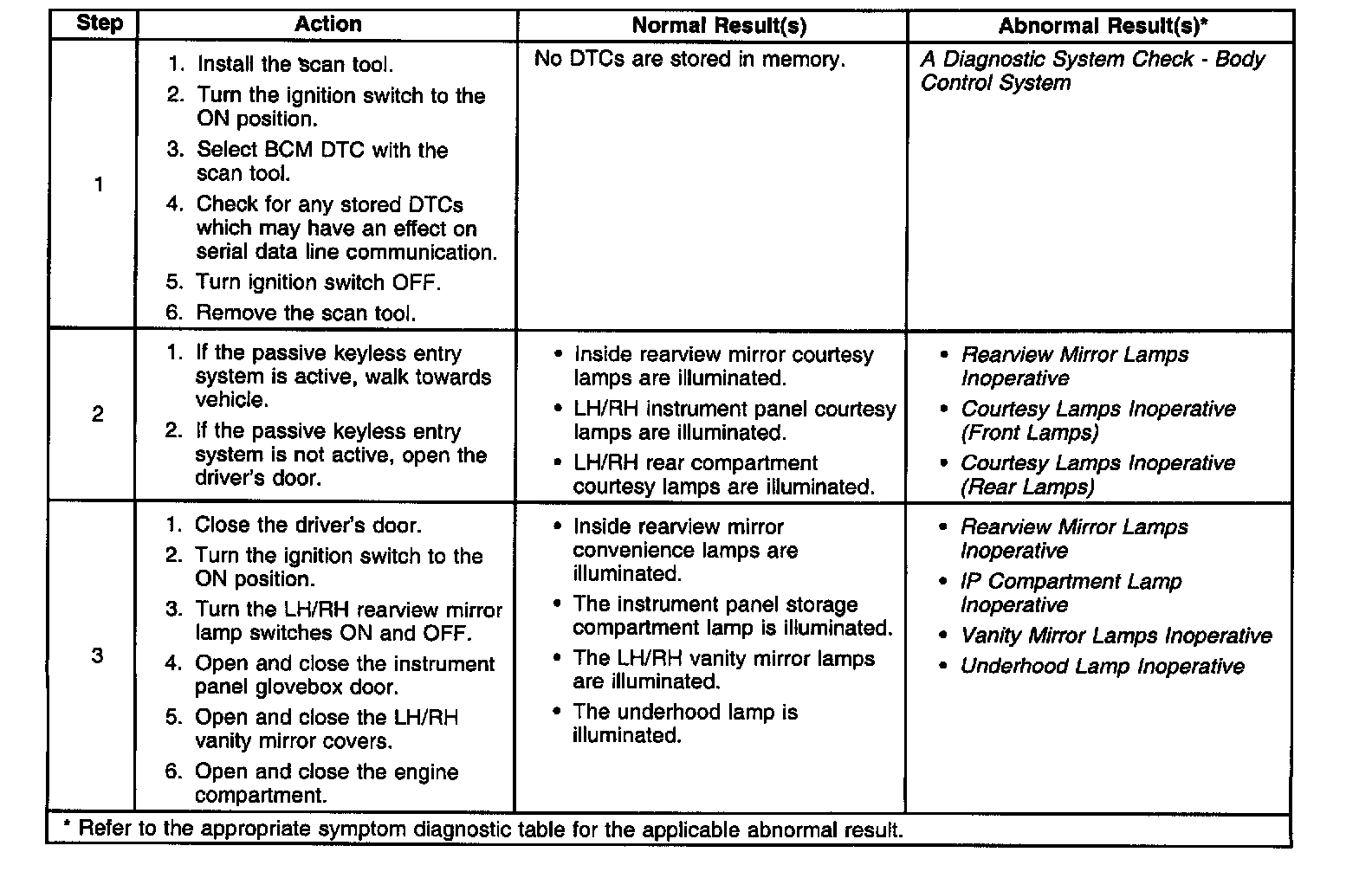 Interior Lamps System Check:
