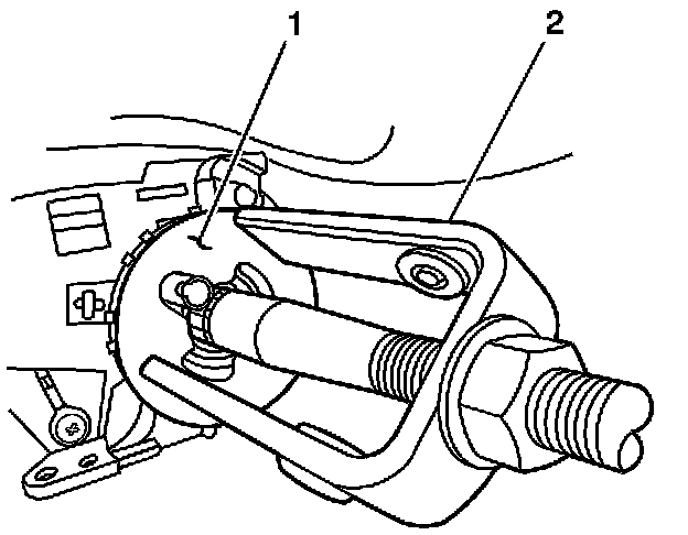 6. Install the wave washer (1) onto the steering shaft assembly (2). Using the procedure below, perform a functional test of the ECL using the Tech 2 and EL47728 Electronic Column Lock Tester (for 1997 and 1998 models built before 5/26/98).
