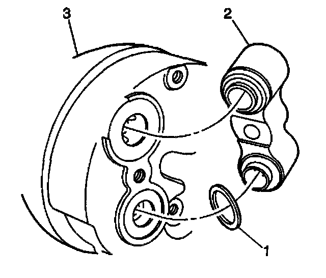IMPORTANT: After tightening the compressor hose (3) to the compressor (2), there should be a slight sealing washer gap (1) of approximately 1.2 mm (3/64 in) between the compressor hose (3) and the compressor (2).