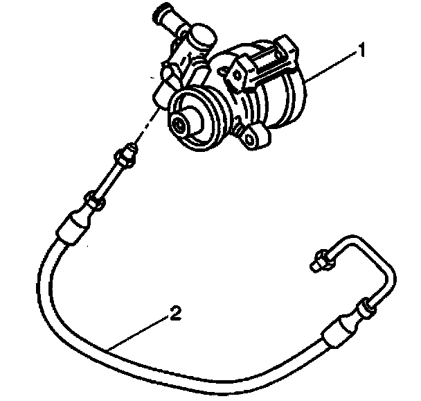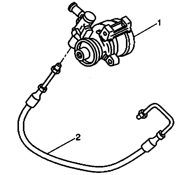 3. Remove the power steering gear inlet hose (2) from the power steering pump (1).