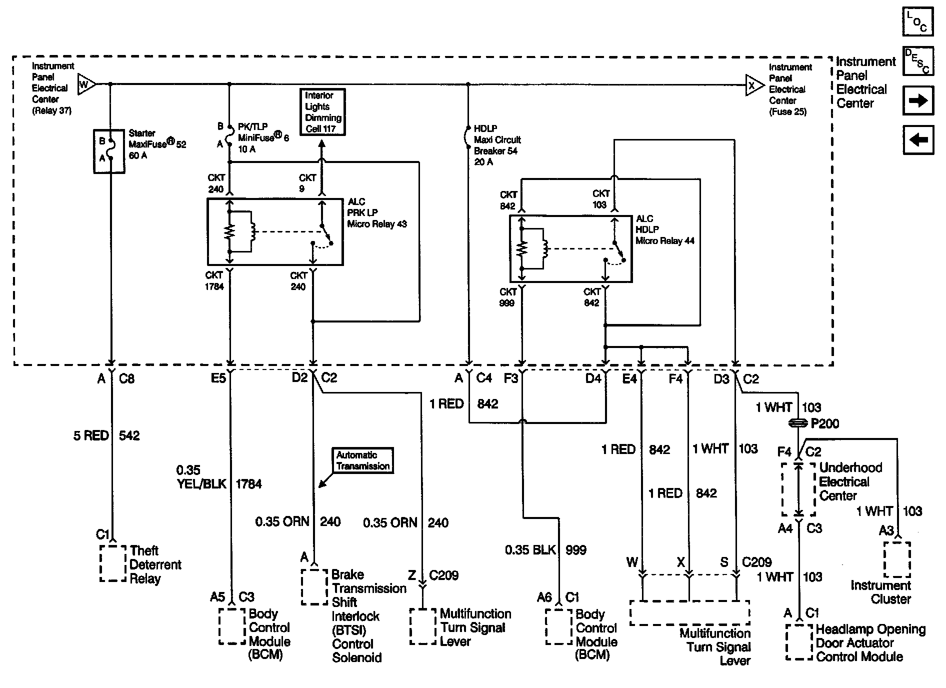I/P Fuses 52, 6, Relays 43, 44, Circuit Breaker 54: