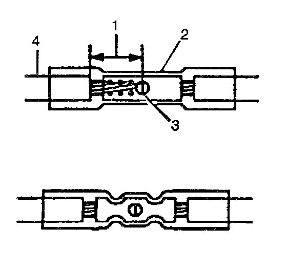 9. Insert the wires into the splice sleeve until the wire hits the barrel stop. The splice sleeve has a stop in the middle of the barrel in order to prevent the wire from passing through the splice (3).