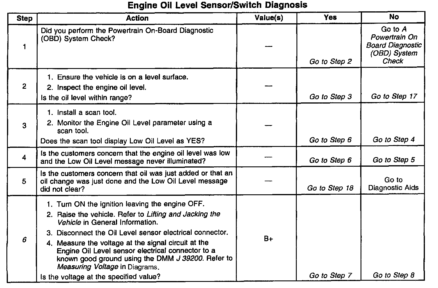 Engine Oil Level Sensor/Switch Diagnosis