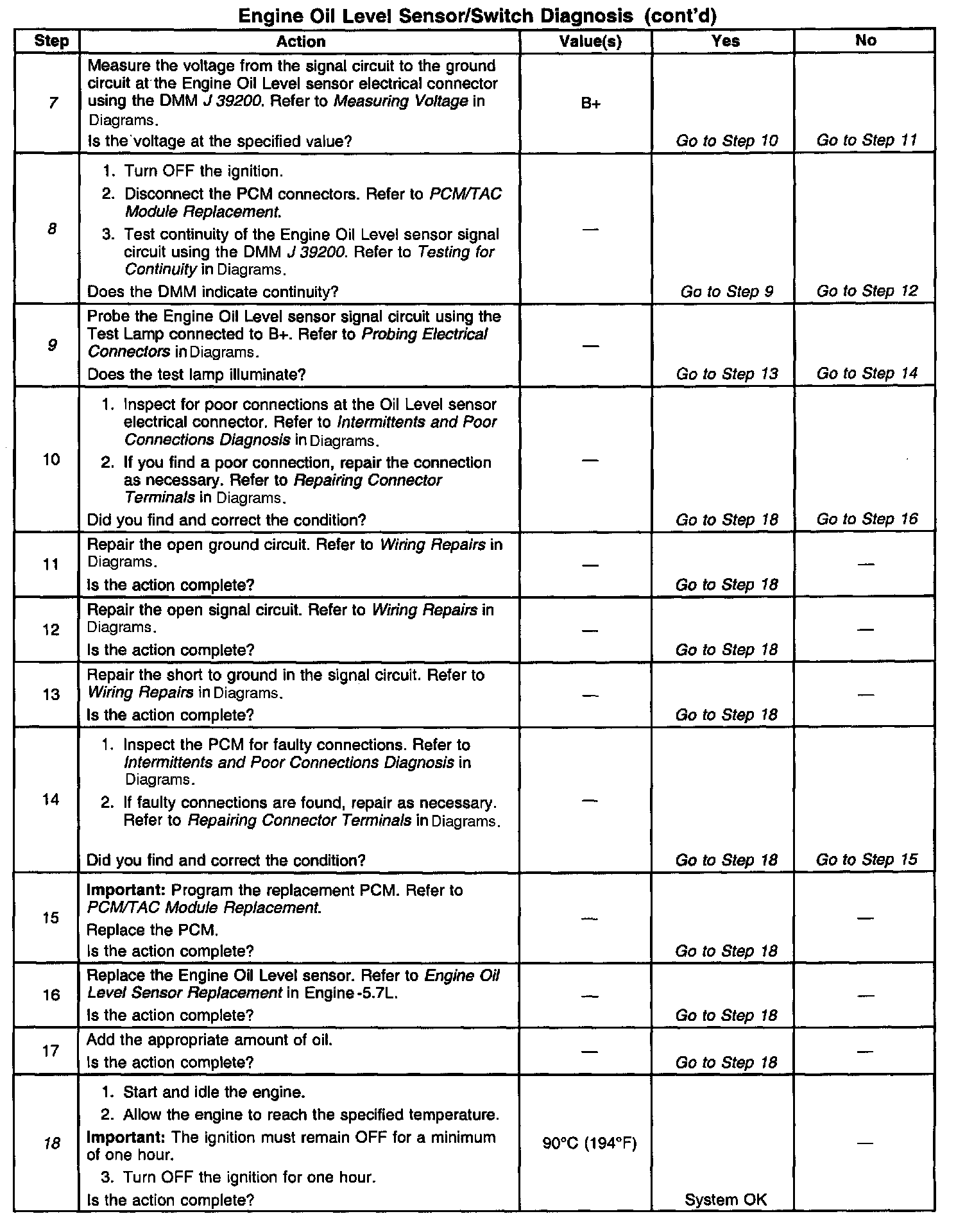9. This steps tests the Oil Level signal circuit for a short to ground.