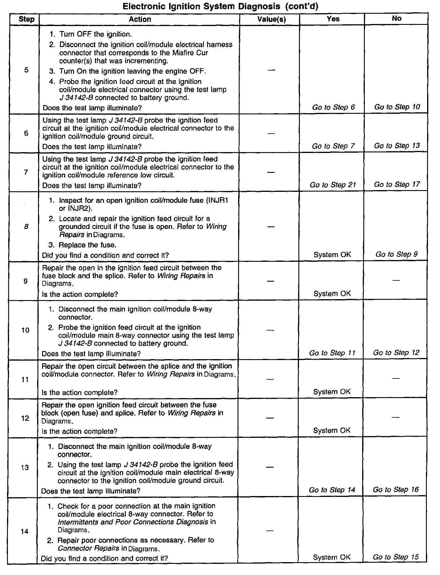 The numbers below refer to the step numbers on the diagnostic table.