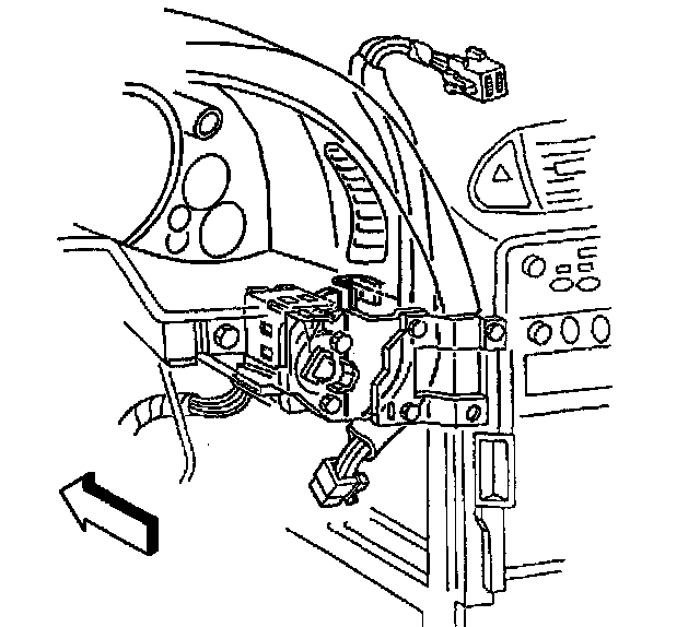 6. Remove the ignition switch lock cylinder electrical connector from the retaining tab on the side of the ignition switch.