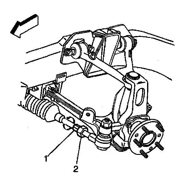 2. Rotate the inner tie rod (1) to the required toe specification setting. Refer to Wheel Alignment Specifications.