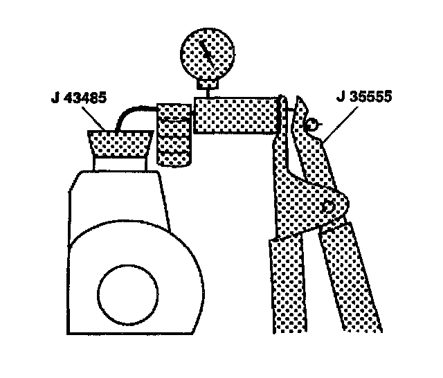 4. Place J 43485 on the pump reservoir filler neck.