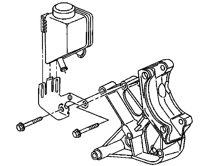 6. Remove the power steering reservoir. Refer to Remote Power Steering Fluid Reservoir Replacement.
