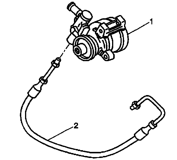 3. Connect the power steering gear inlet hose (2) to the power steering pump (1).