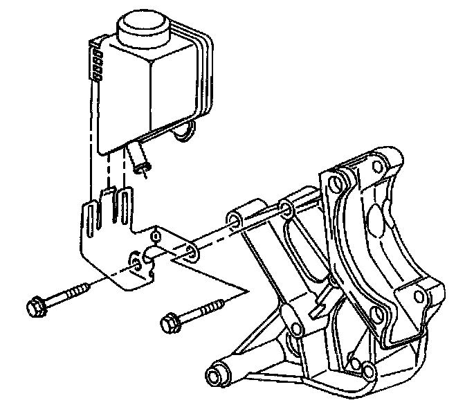 7. Install the power steering reservoir. Refer to Remote Power Steering fluid Reservoir Replacement.