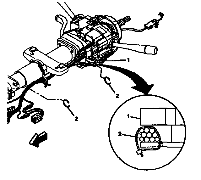 4. Install new wire harness straps (2) to the steering column assembly (1) and the column.
