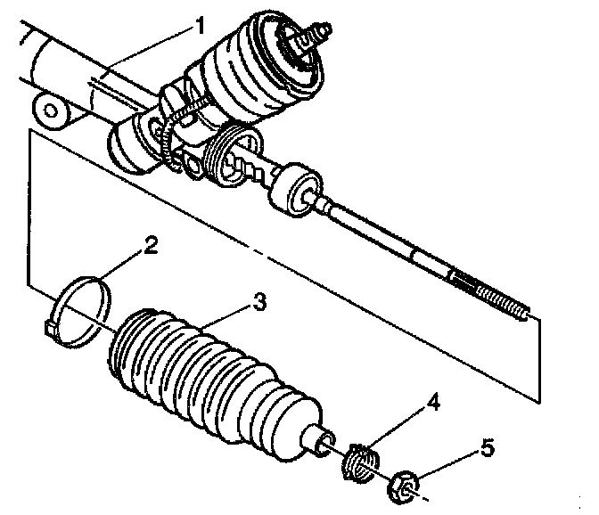 5. Remove the shock dampener (3) from the rack inner tie rod assembly by sliding the shock dampener back on the rack.