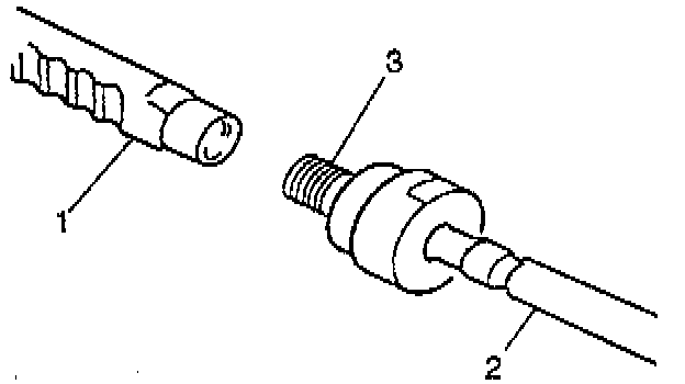 7. Remove the old tread locking compound from the threads of the rack (1) and from the inner tie rod (3).