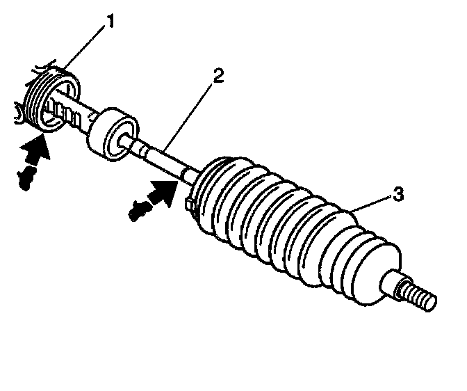 2. Apply grease to the inner rod (2) and apply grease to the gear assembly (1) prior to the boot (3) installation.