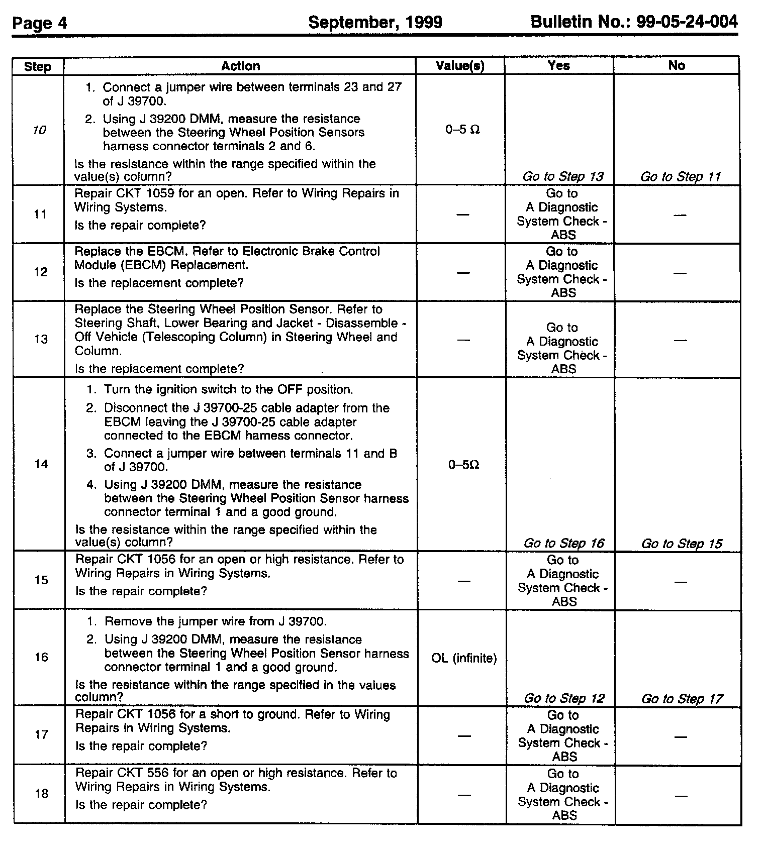 Revised Procedure for DTC C1288 Steering Sensor Circuit Malfunction