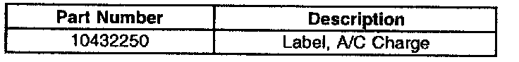 ^ Increasing the system charge should not be considered a "fix" for insufficient cooling, as it will have only a minimal affect on system performance. If the system charge is increased to 0.794 kg (1.75 lbs), the underhood charge label must be replaced with P/N 10432250.