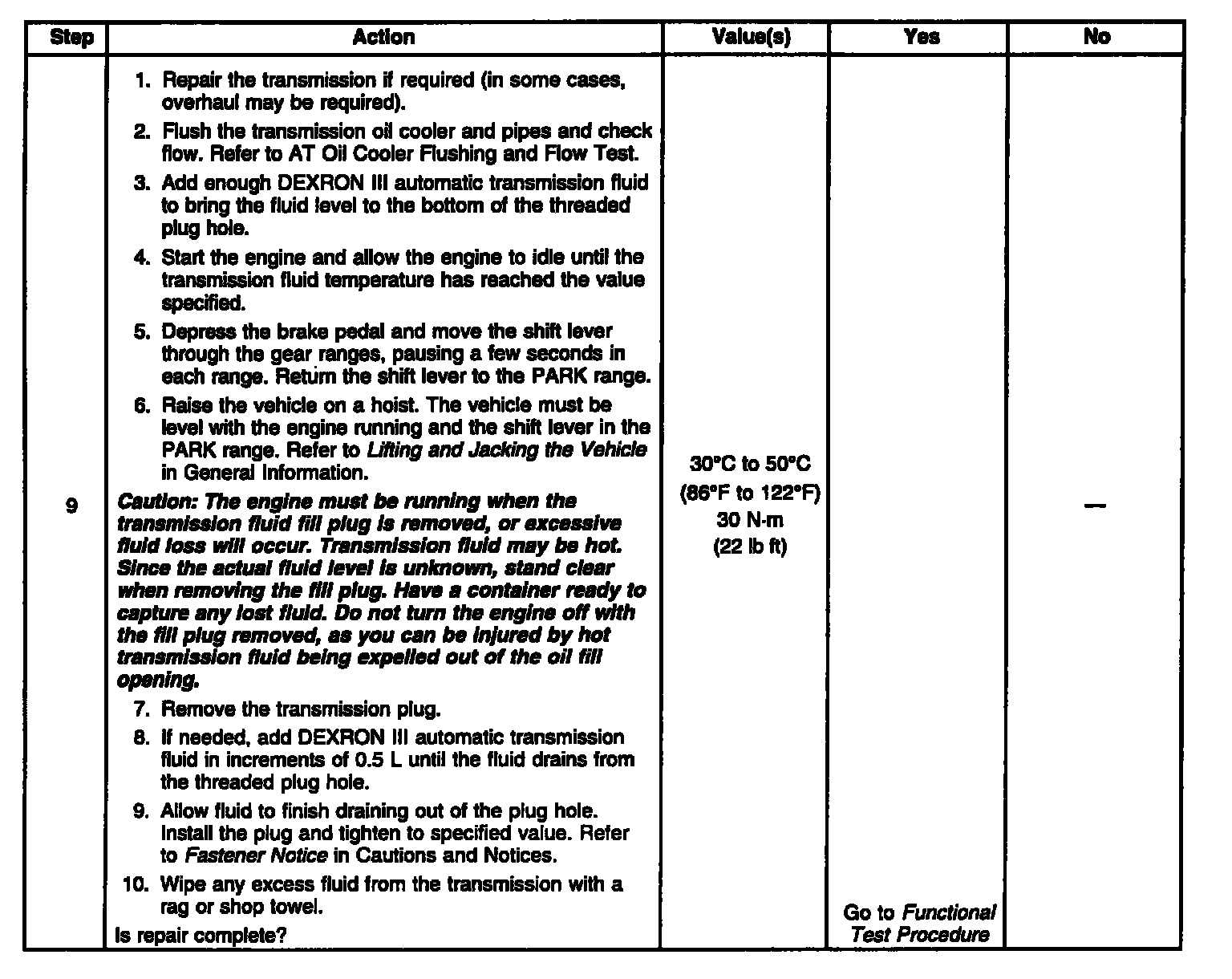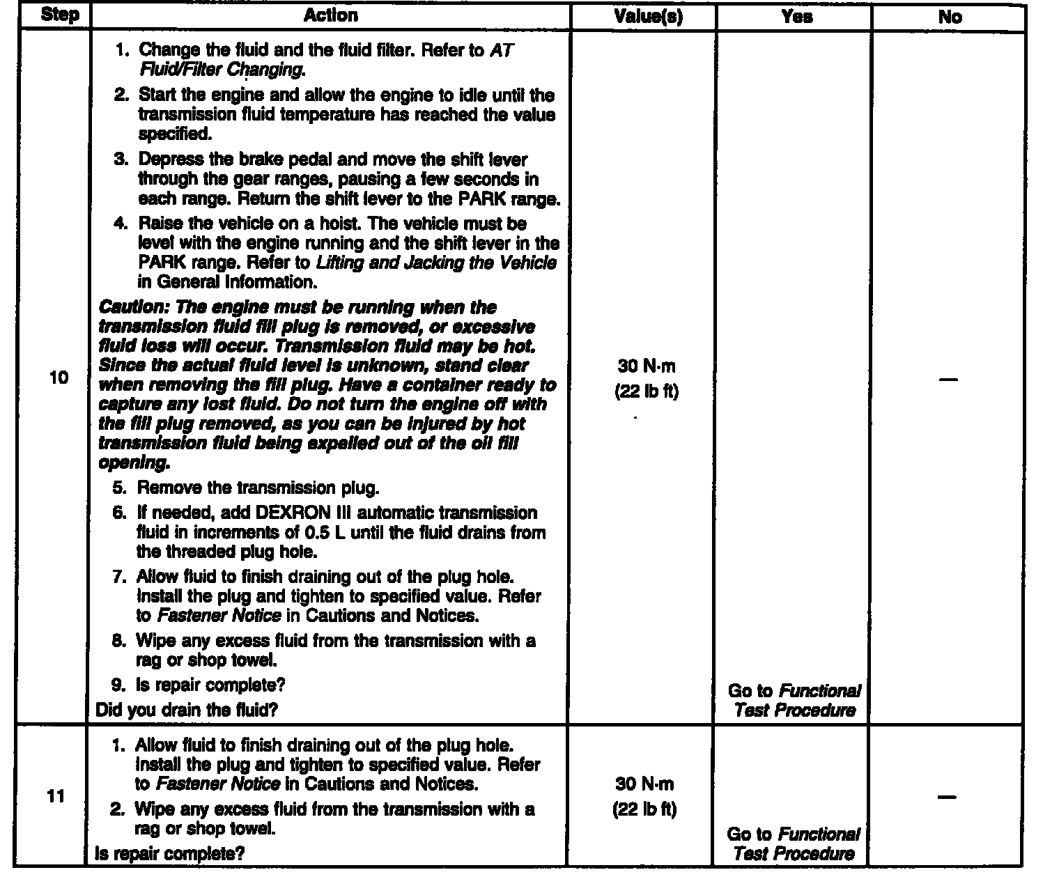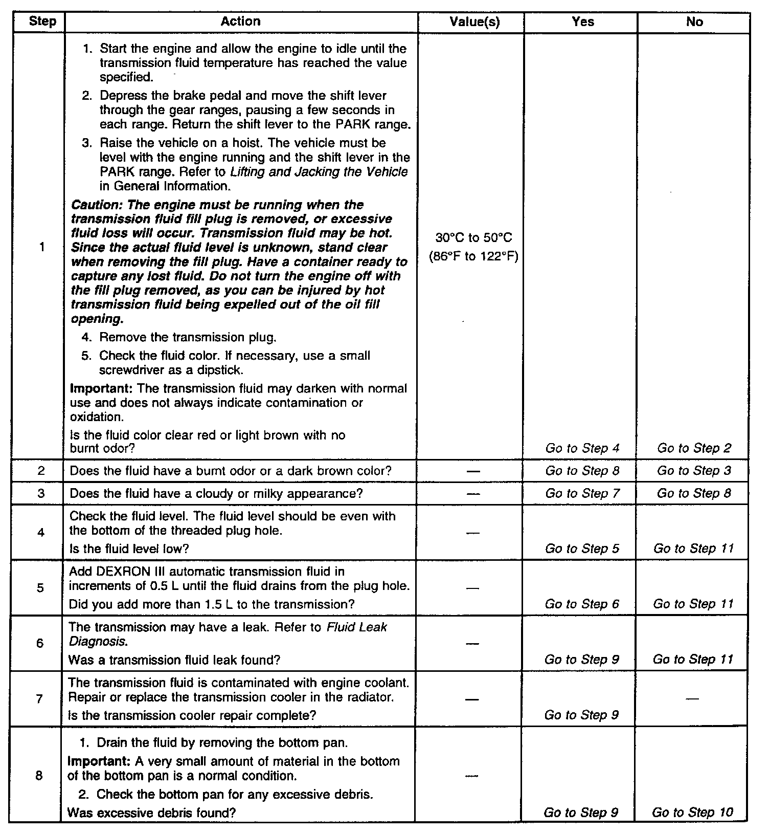 Transmission Fluid Checking Procedure