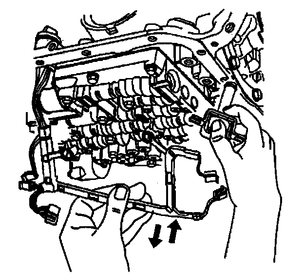 7. Remove the TCC solenoid (with O-ring seal) and wiring harness assembly from the control valve body, then reposition the assembly to the side of the transmission case.