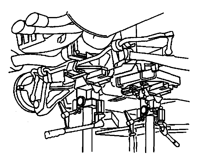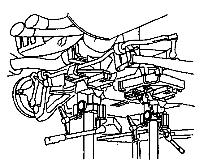 31. Position a transmission jack under the rear suspension crossmember and firmly secure the crossmember to the jack.