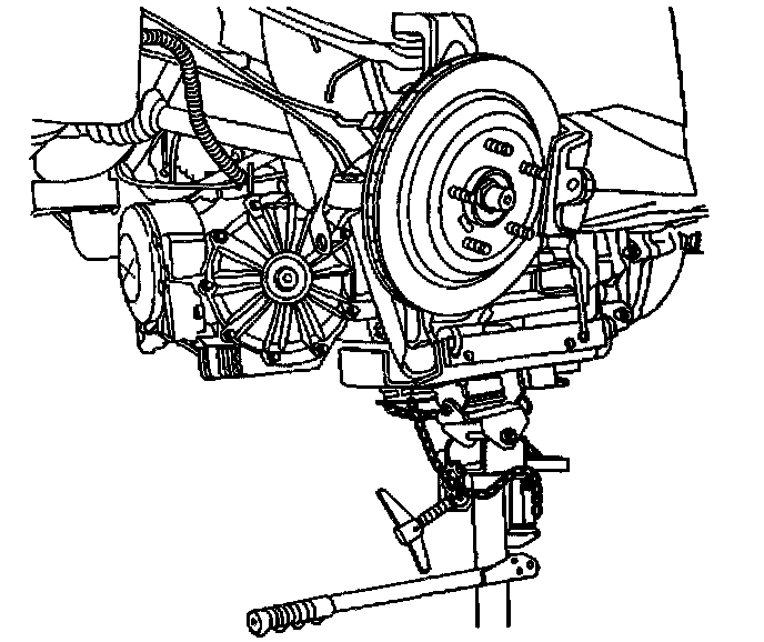 Notice: When lowering and removing the rear of the driveline, observe the clearance between the rear of the transaxle assembly and the underbody to prevent damage.