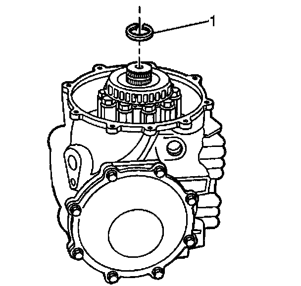 14. Remove the C-clip (1) from the right output shaft.