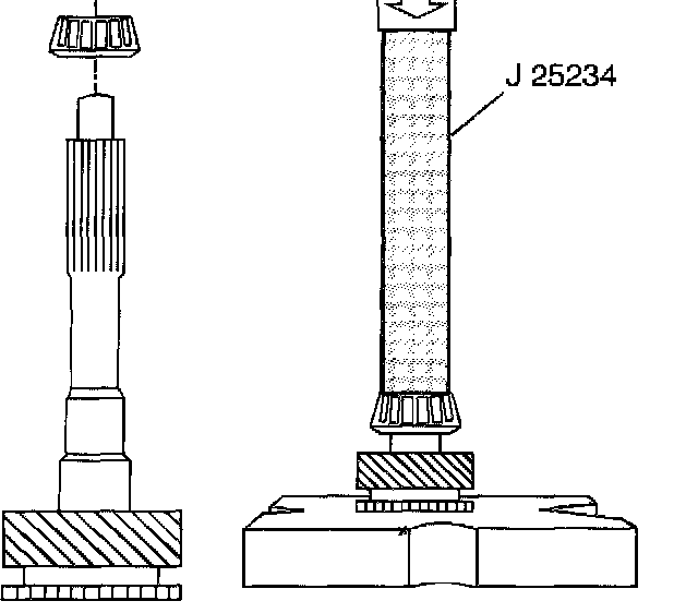 2. Install a new tapered bearing on the input shaft. Use the J25234 and a hydraulic press.
