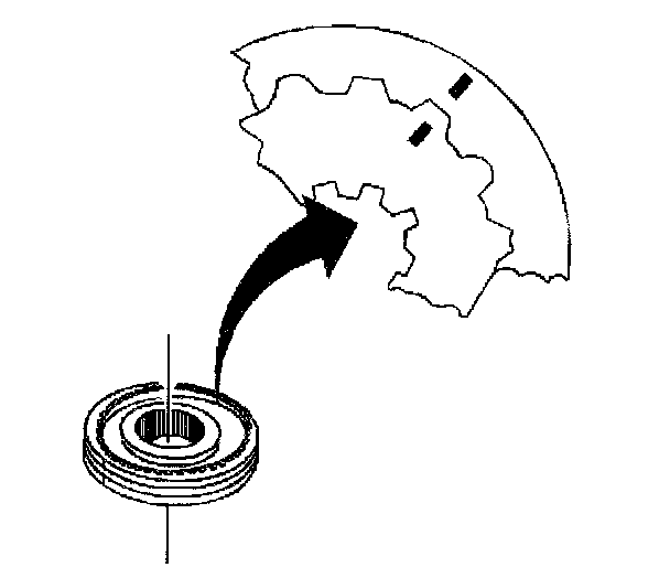 13. Scribe a mark on the synchronizer hub and on the sleeve. This will help you to reinstall the parts in the same position.
