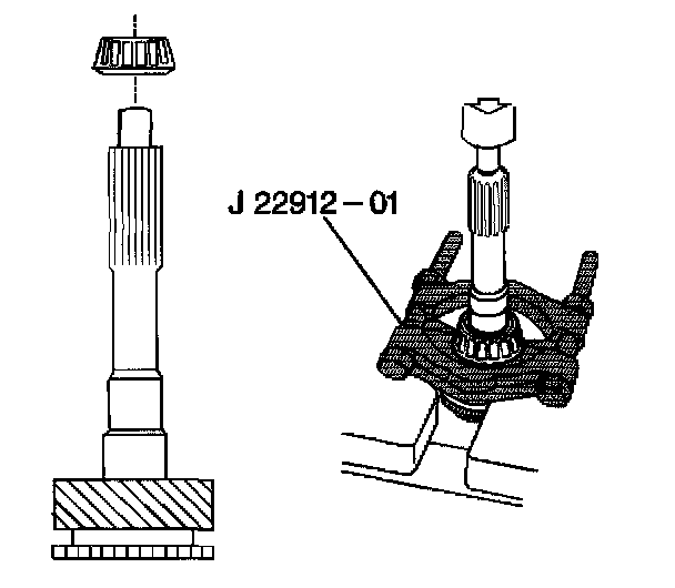1. Remove the tapered bearing from the input shaft, using the J 22912-01 and a hydraulic press.