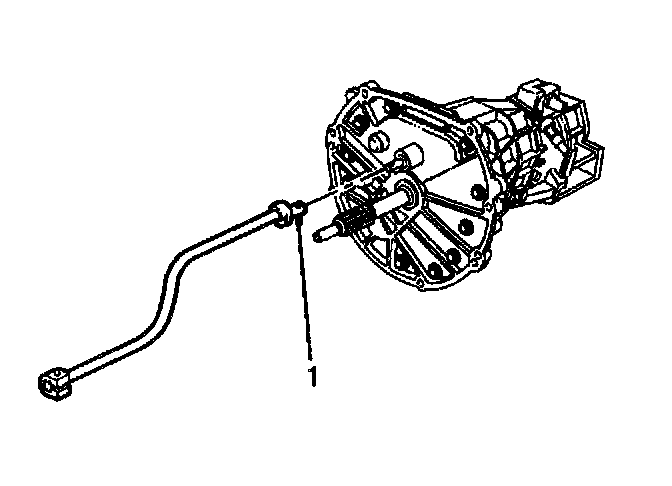 4. Using a drift or punch, remove the roll pin (1) retaining the transmission shift rod to the transmission shift shaft.