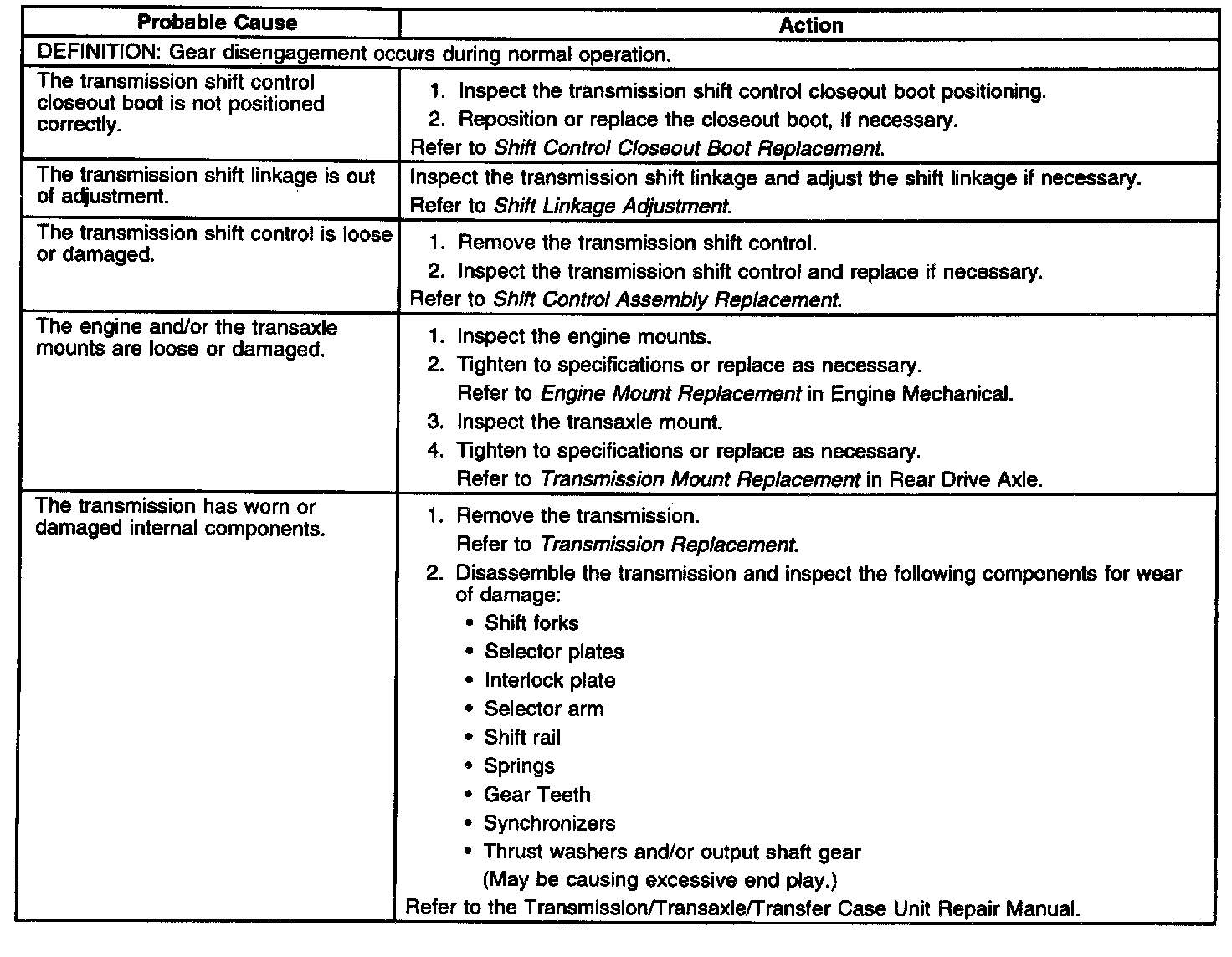 Transmission Jumps Out of Gear