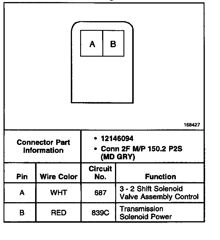 Torque Converter Clutch Pulse Width Modulated (TCC PWM) Solenoid Valve Connector, Wiring Harness Side