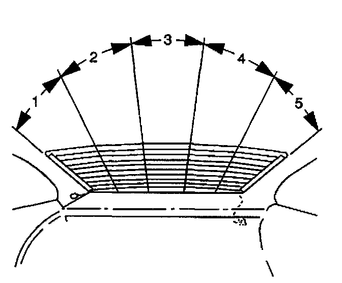 4. Contact the other test lamp lead to each of the grid lines at points 1 through 5 as shown in the figure.