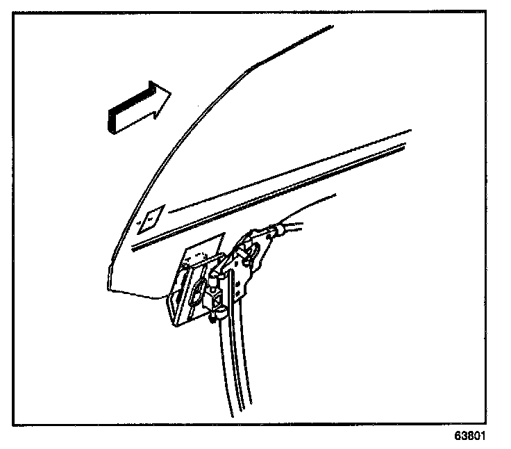 8. With the aid of an assistant standing outside of the vehicle, position the window in the door opening.