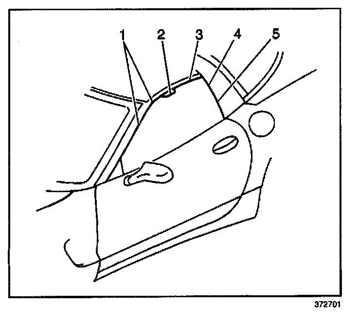 13. Perform minor height and minor tip-in adjustments as necessary. Refer to Window Tip-in Adjustment -Door and Window Height Adjustment - Door Minor.