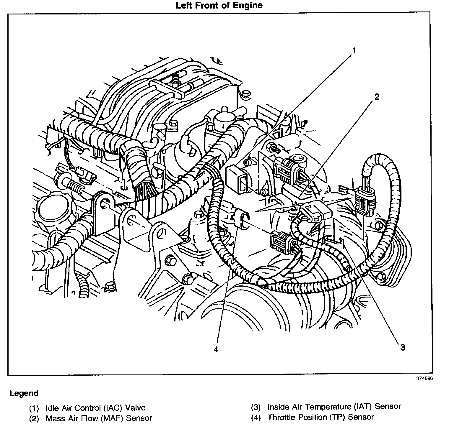 Left front of the engine compartment, in the air cleaner duct