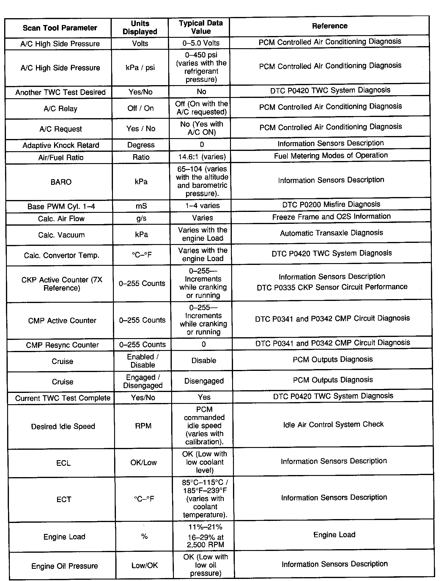 Typical Scan Tool Data Values (Part 1 Of 4):