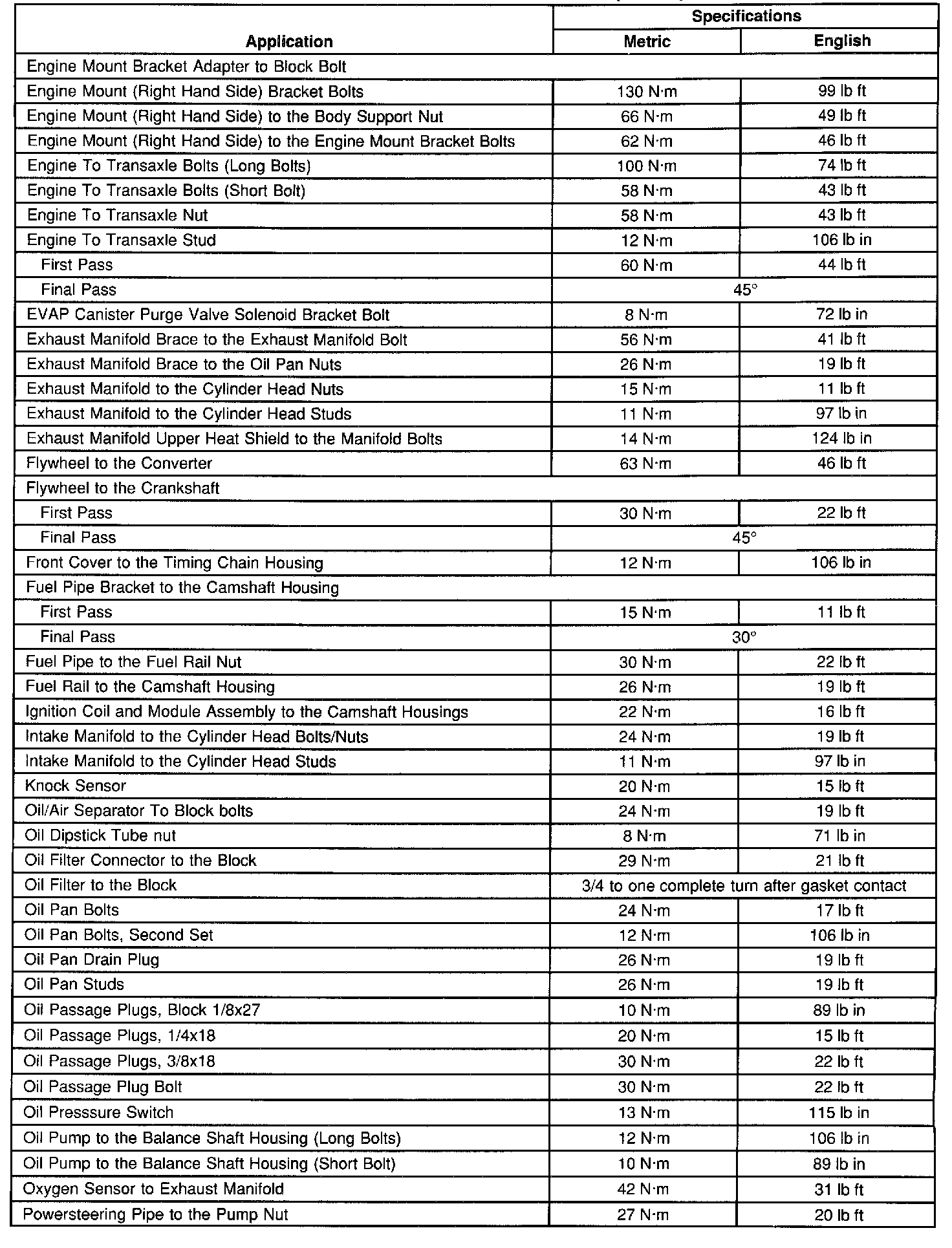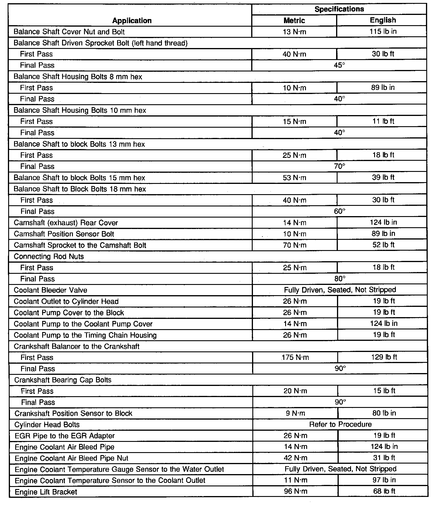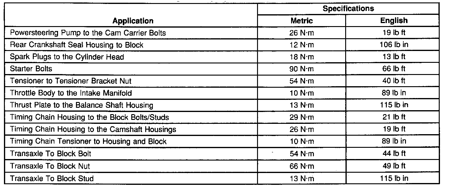 Engine Tightening Specifications