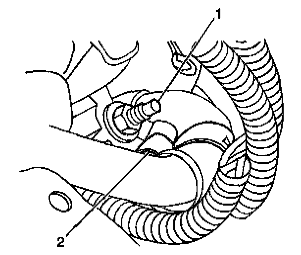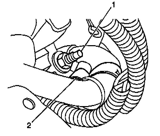 5. Install the power steering hose retainer (2) and nut (1).
