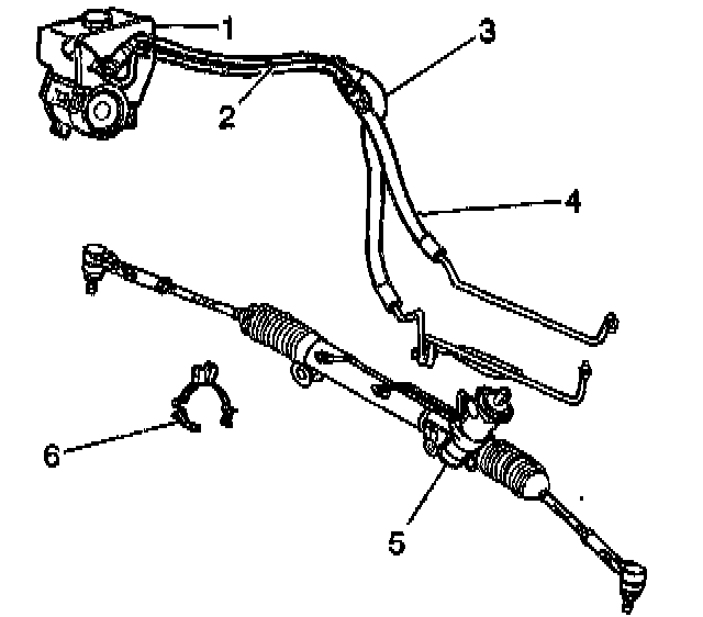 1. Install the power steering return hose (3) to the power steering gear (5).