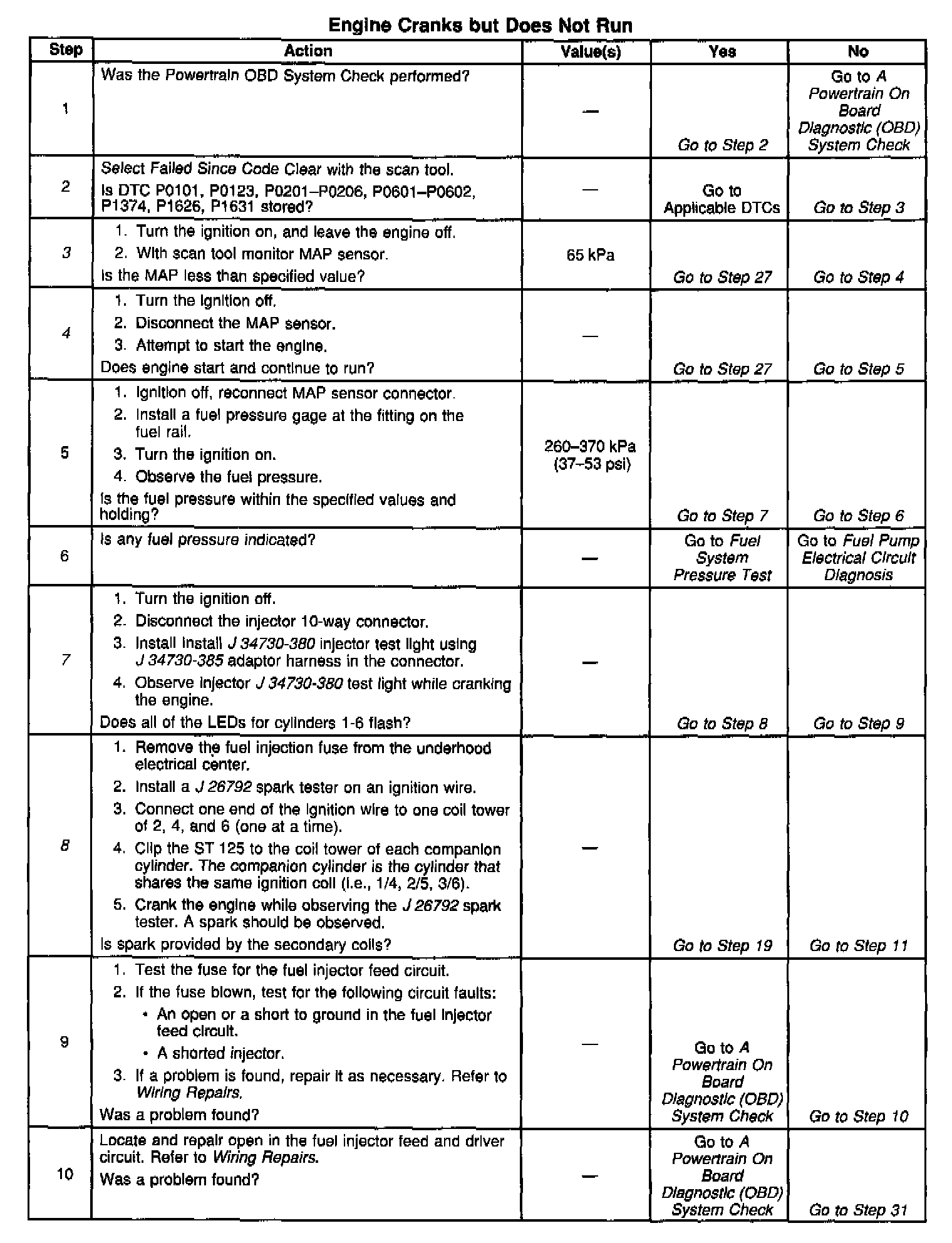 The number(s) below refer to the step number(s) on the Diagnostic Table: