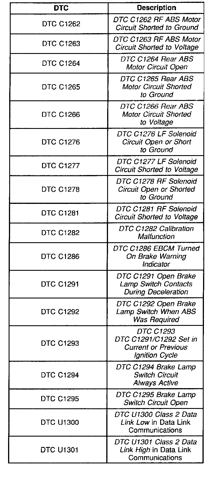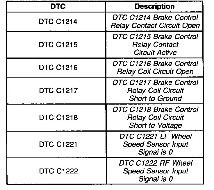 Diagnostic Trouble Code Descriptions