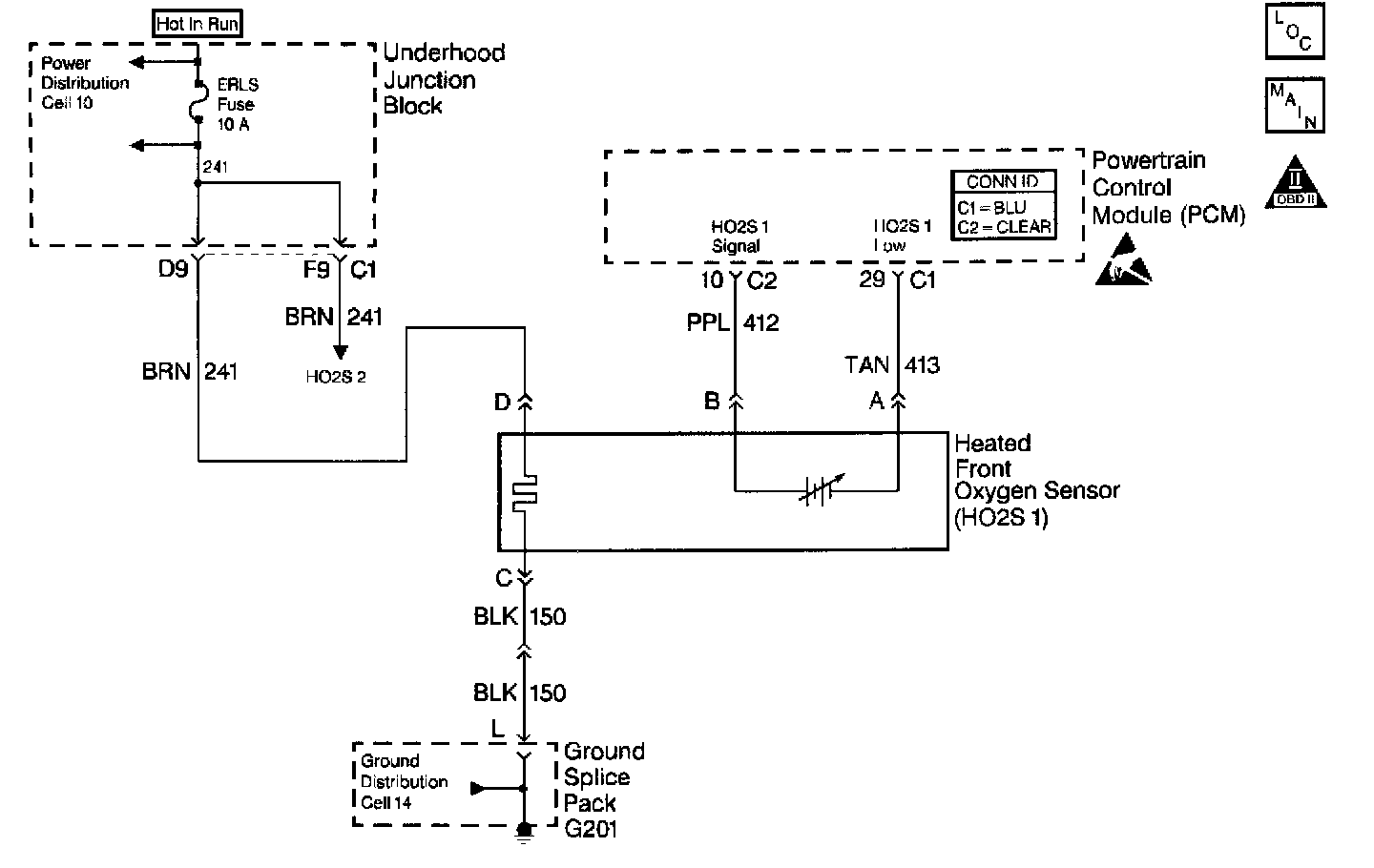 The PCM supplies a bias voltage of about 450 mV between the HO2S signal and low circuits. When measured with a 10 megaohm digital voltmeter, this may display as low as 320 mV. The Oxygen Sensor varies the voltage within a range of about 1000 mV when the exhaust is rich, down through about 10 mV when exhaust is lean. The PCM constantly monitors the HO2S signal during closed loop operation and compensates for a rich or lean condition by decreasing or increasing injector pulse width as necessary. If the HO2S 1 voltage remains excessively high for an extended period of time, DTC P0132 will be set.