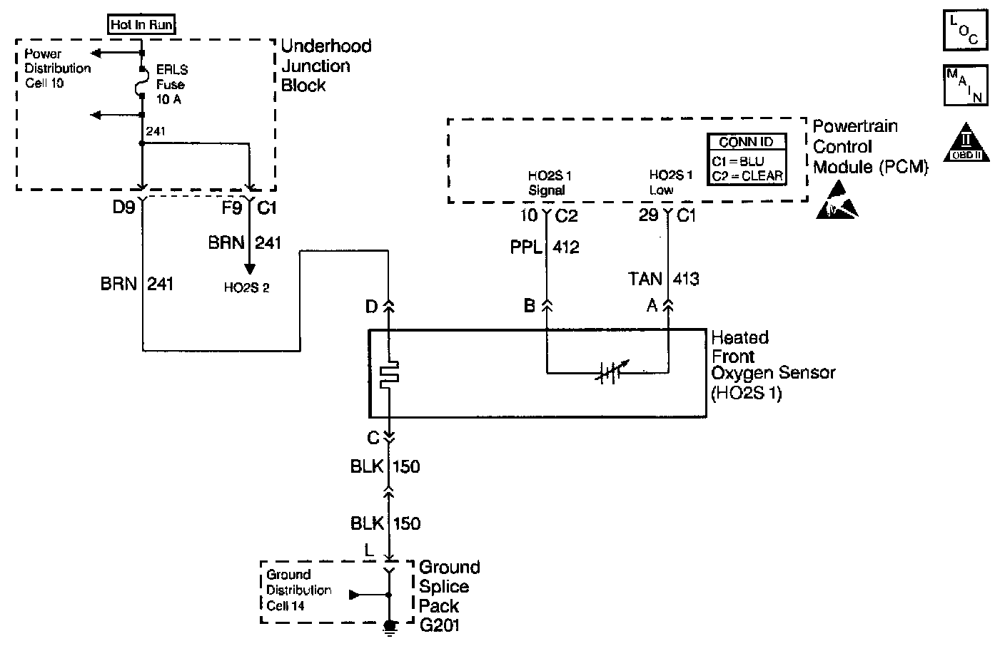 Heated Oxygen Sensors are used to minimize the amount of time required for closed loop fuel control operation and to allow accurate catalyst monitoring. The Oxygen Sensor heater greatly decreases the amount of time required for fuel control sensor HO2S 1 to become active. The Oxygen Sensor heater is required by catalyst monitor sensor HO2S 2 to maintain a sufficiently high temperature. This allows accurate exhaust oxygen content readings further from the engine.