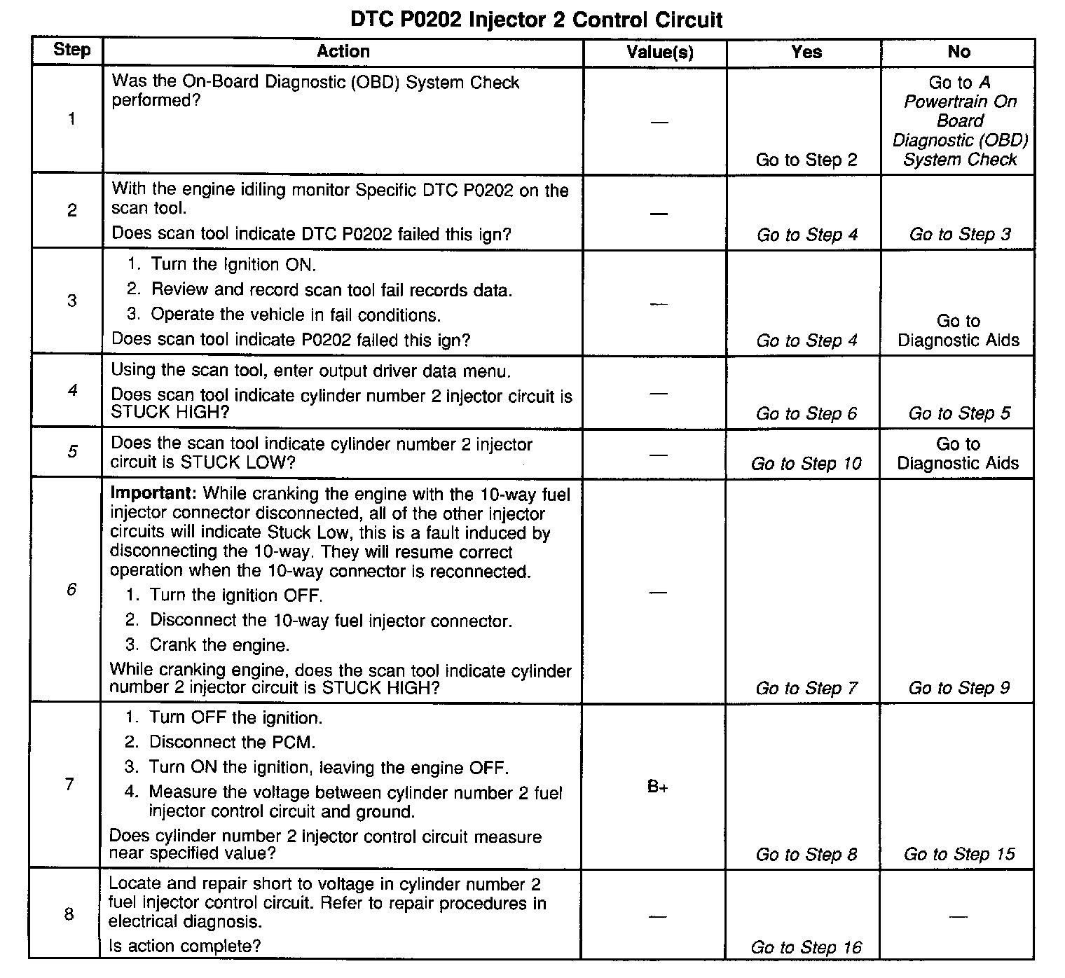 The number(s) below refer to the step number(s) on the diagnostic table.