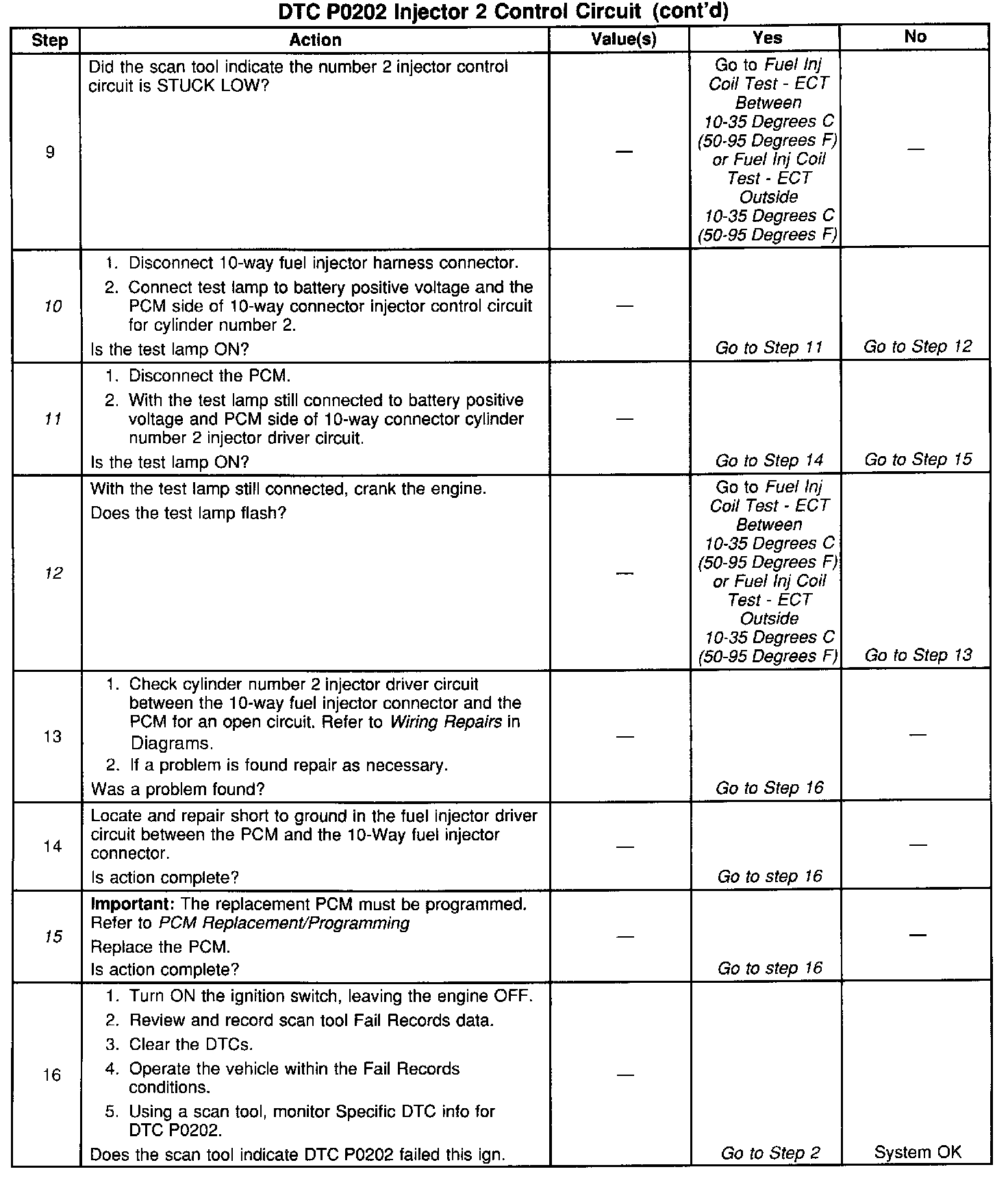 11. The fuel injector in this circuit will need to be checked after the short to ground is repaired or after the PCM is replaced.