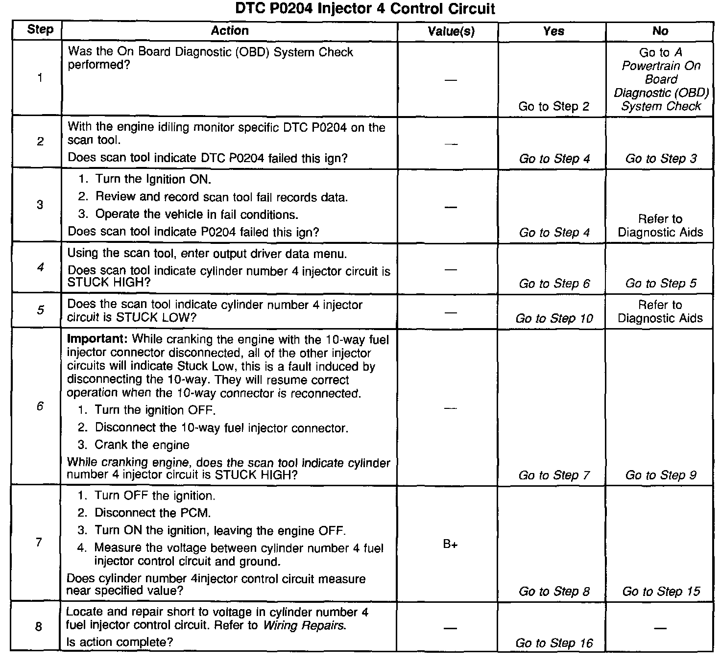 5. If the scan tool indicates STUCK LOW there is an open or a short to ground on the fuel injector driver circuit.
