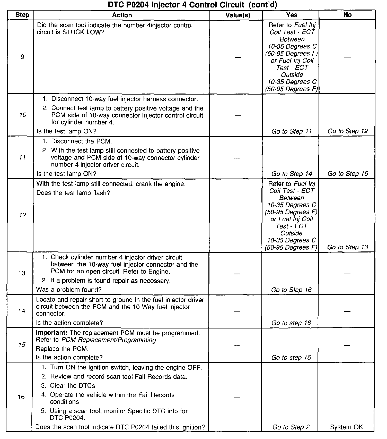 11. The fuel injector in this circuit will need to be checked after the short to ground is repaired or after the PCM is replaced.