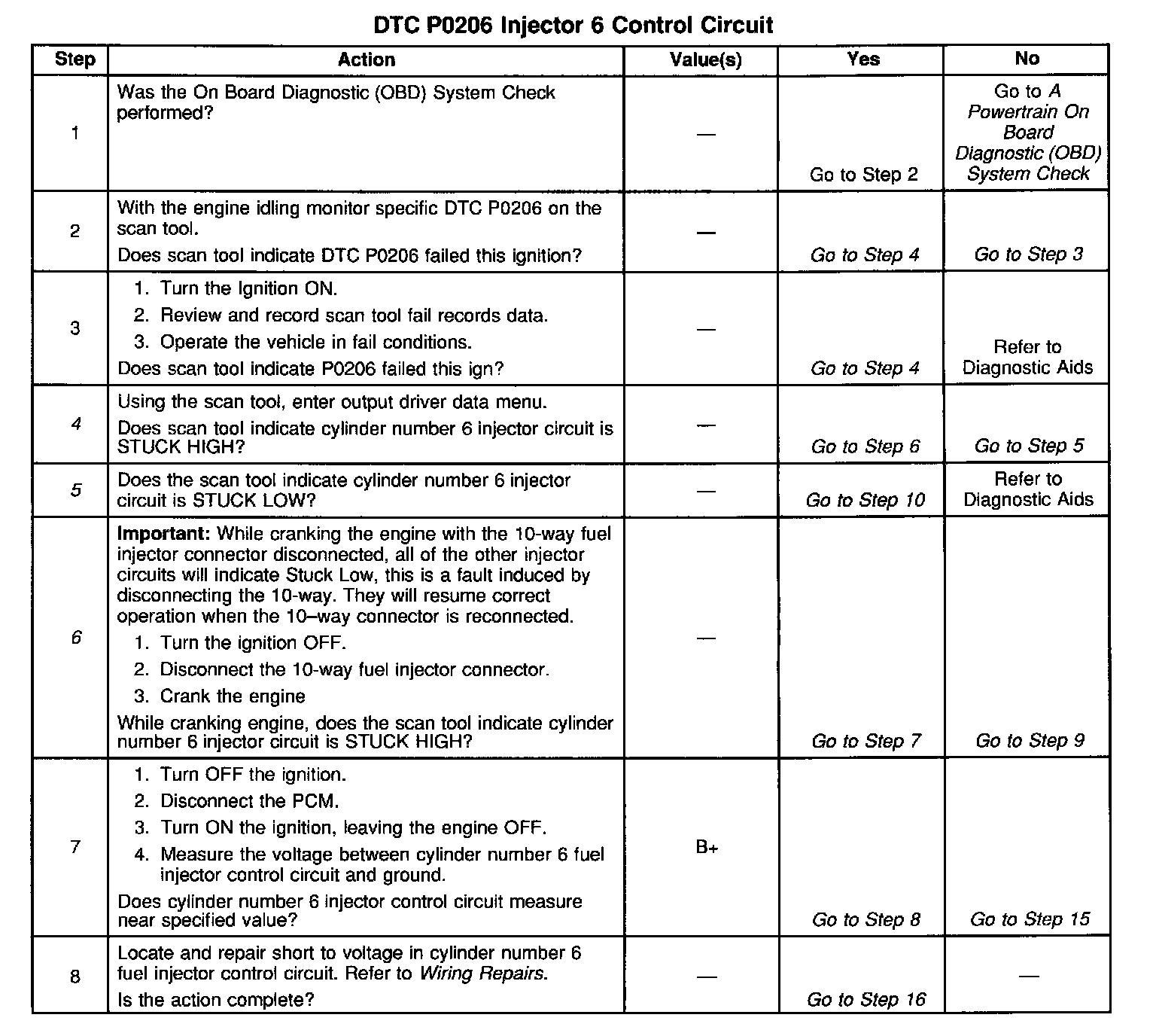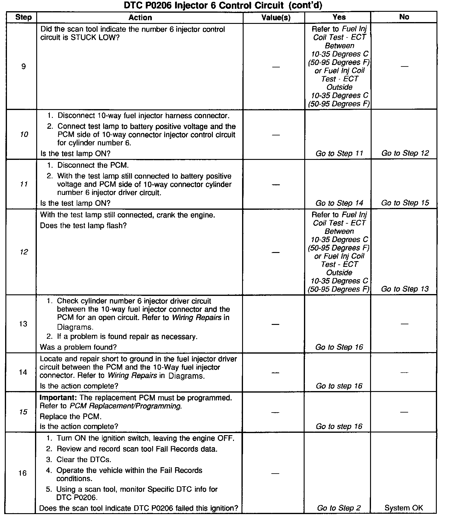 The PCM controls the fuel injector control circuit using a Multi Function Driver (MFD). The MFD has the ability to detect an electrical malfunction. If an electrical malfunction is detected, the MFD signals the PCM to set DTC P0206.