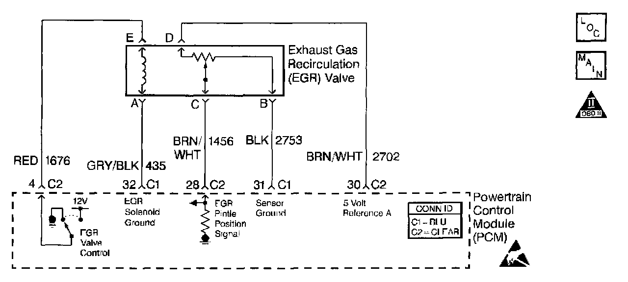 ^ Poor connection at PCM or EGR Valve. Inspect harness connectors for backed out terminals, improper mating, broken locks, improperly formed or damaged terminals, and poor terminal to wire connection. Refer to Intermittents and Poor Connections.